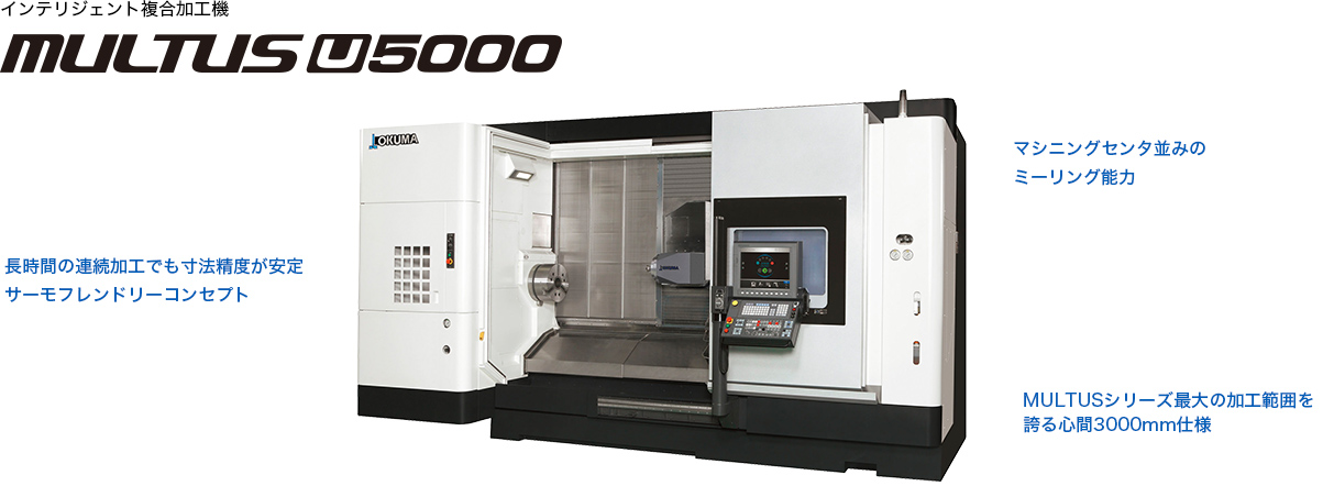 そうした中で複数メーカの機種を調査した結果、長時間の連続加工でも寸法精度が安定し、マシニングセンタ並みのミ―リング能力を備え、高い生産性が期待できることなどが決め手となり、オークマの「MULTUS U5000」が最適と判断しました。