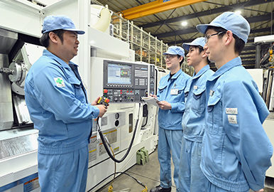 Based on the preliminary evaluation, we appointed our young employees to oversee ARMROID operations. From before we have been using Okuma NC lathes, but the robot operation is managed by the new employees. Immediately after the installation, they were able to use it without difficulty following the guidance of ROID Navi, an easy robot operating tool, and within a few months we launched a 30-type parts production operation.