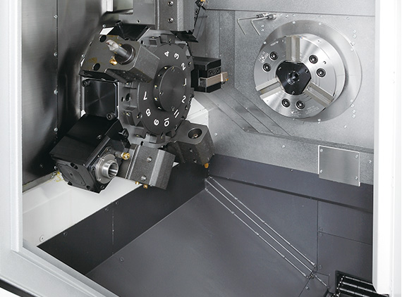 回転工具主軸も7.1kWに高出力化し、従来機よりトルクを1.25倍、エンドミル加工能力を65cm 3/minと2倍に強化しました。ミーリング加工の工程集約が可能です。
