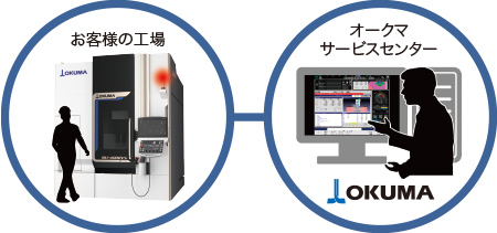 リモート診断は、問題発生時にお客様の機械の画面をオークマサービスセンターより参照して、同じ画面を見ながら、正確なコミュニケーションをとり、診断ができる機能です。