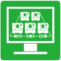 OSPとPCを接続し、工場稼働モニタ”Factory Monitor suite”をPCにインストールするだけで、機械の稼働状況を加工現場で、事務所で、どこからでも見える化できます。