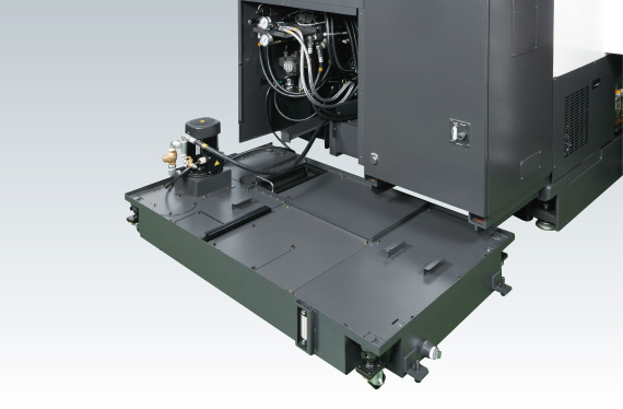 別置式のクーラントタンクにより、コンベヤを外すことなくタンクのみを引出し、清掃が可能です。また、メンテナンススペース内で洗浄が可能で、最小限のスペースに設置可能です。