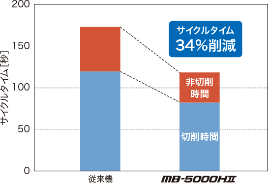 アルミ部品のサイクルタイムを従来機と比べ34%削減しました。