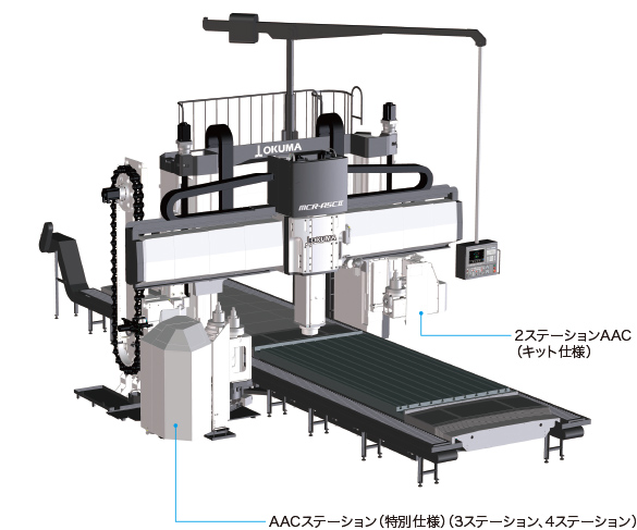 2ステーションAACを右コラム袖に配置し機械幅を最小に