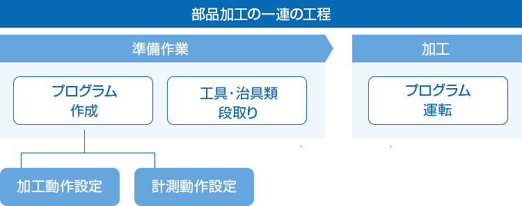 部品加工の準備作業から加工までの一連の工程を、OSP-P500がアシストします。
