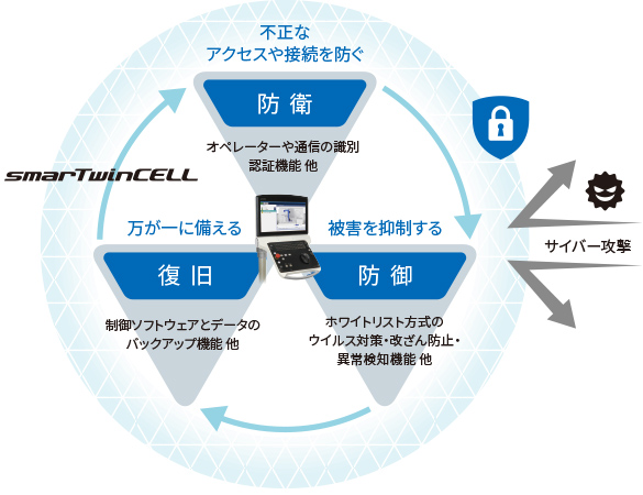 機械の稼働や加工プログラムなどの大切な資産をサイバー攻撃から守ります
