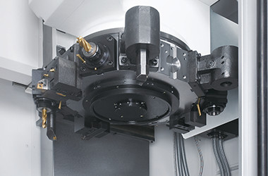 回転工具主軸を従来機から大幅にパワーアップし、より強力な加工と、より多彩な工程集約を可能にしました。隣接工具との干渉を最小化した刃物台は、12本全箇所にミーリング工具を取り付け可能です。
